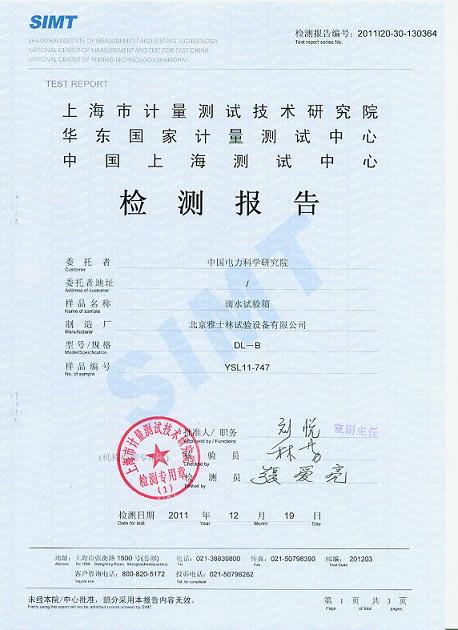 >>滴水試驗裝置檢測報告-上海計量院-中國電科院