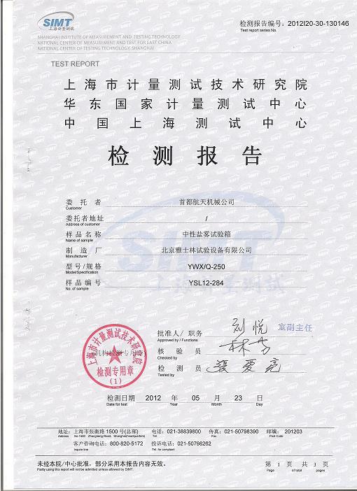 >>鹽霧腐蝕試驗(yàn)箱檢測(cè)報(bào)告-上海計(jì)量院-首都航天
