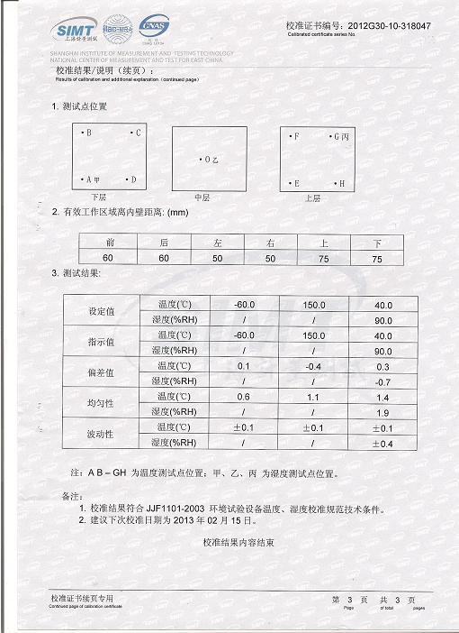 >>氣候試驗(yàn)箱校準(zhǔn)證書(shū)-上海計(jì)量院-中核控制1