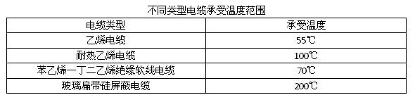 高低溫試驗(yàn)箱針對(duì)需要外接電纜的試樣電纜一定要使用經(jīng)受得住測(cè)試條件的電纜,下表是各類電纜和其承受溫度的表格。