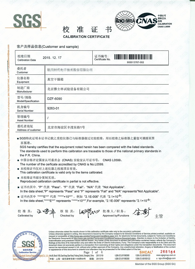 >>真空干燥箱校準(zhǔn)證書(shū)模板下載—SGS